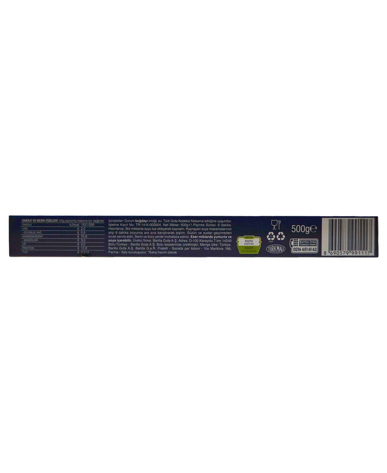 Makarnada klasik İtalyan lezzetini ve kalitesini sunan Barilla Spaghetti Makarna yenilenen şekli ve kalınlığı ile tam al dante lezzeti ve sertliği sunar. 9 dakikada pişer; kolay, hızlı ve lezzetli bir öğün sunar. Sade, peynirli, salçalı ve diğer soslarla lezzetlendirebilirsiniz. Barilla Makarna 500 g Spaghetti n.5 yüksek kalite durum buğdayından üretilmiştir ve katkı maddesi içermez.