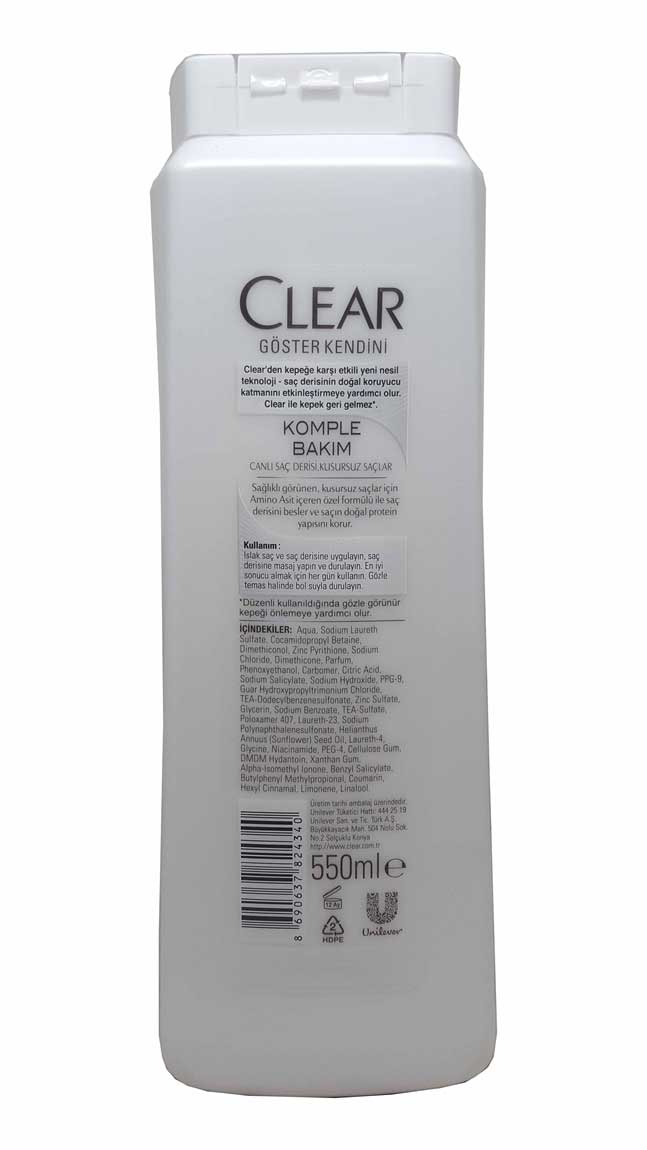 Clear Komple Bakım Şampuanı ile hem saçlarınıza hem de saç derinize tam bakım yapın. İçeriğindeki aminoasitler ile deriyi besleyen ve canlandıran Clear Komple Bakım Şampuanı daha canlı, parlak ve yumuşak saçlara kavuşmanızı sağlar, saç derisini onararak kepek oluşumunu önler.
