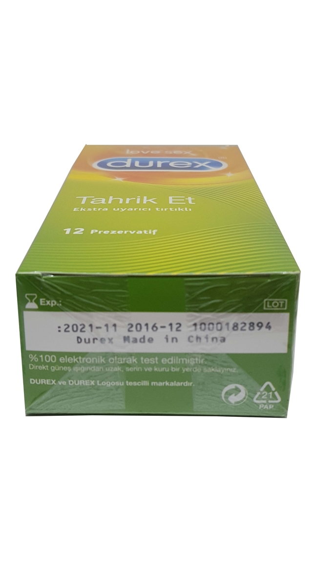 Durex Tahrik Et Prezervatif tırtıklı yapısıyla kadının uyarılmasını kolaylaştırır.
