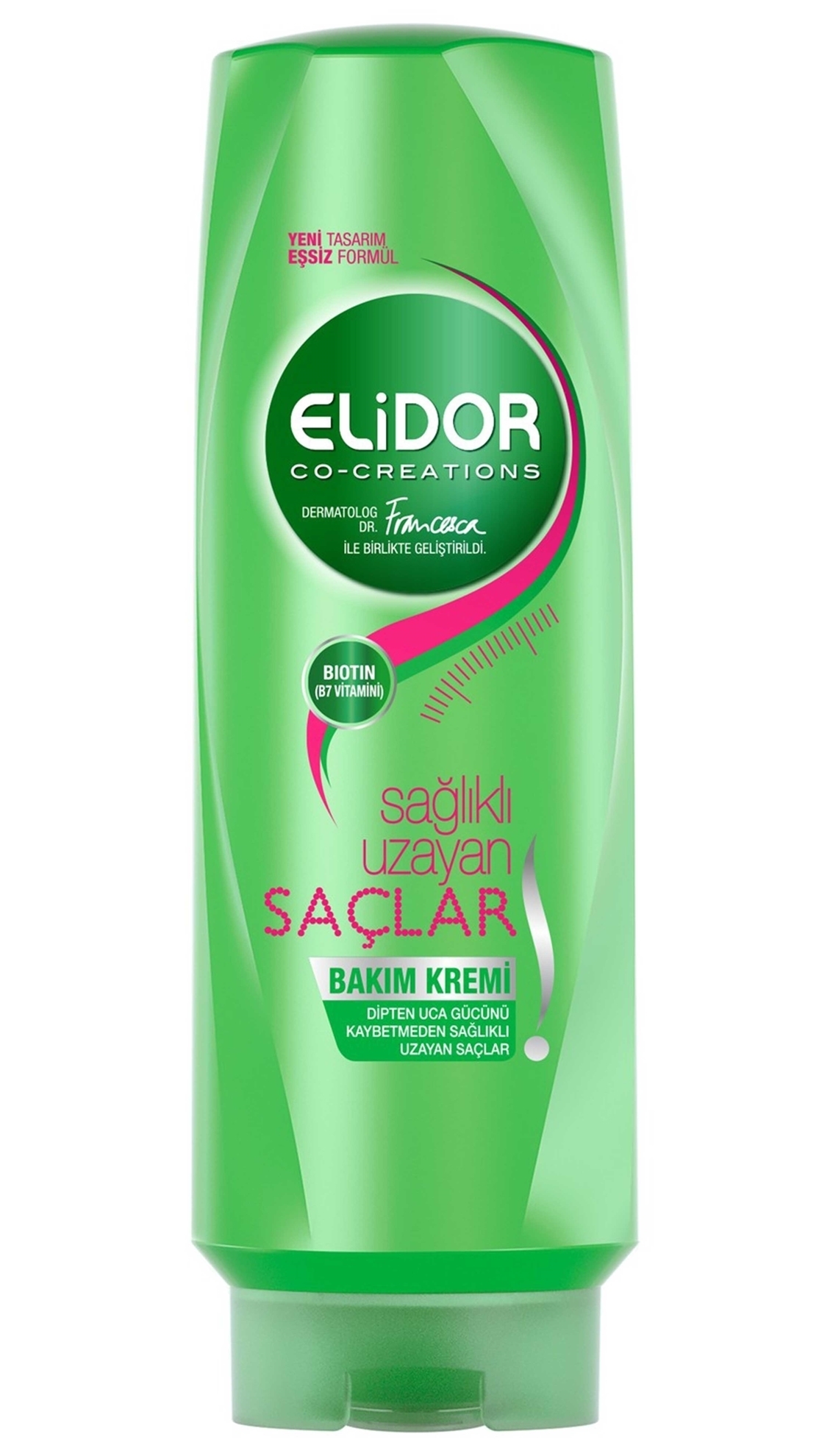 Biotin içeren Elidor Sağlıklı Uzayan Saçlar Saç Bakım Kremi saçlarınızın güçlü kalmasına ve hızlı uzamasına yardımcı olur.