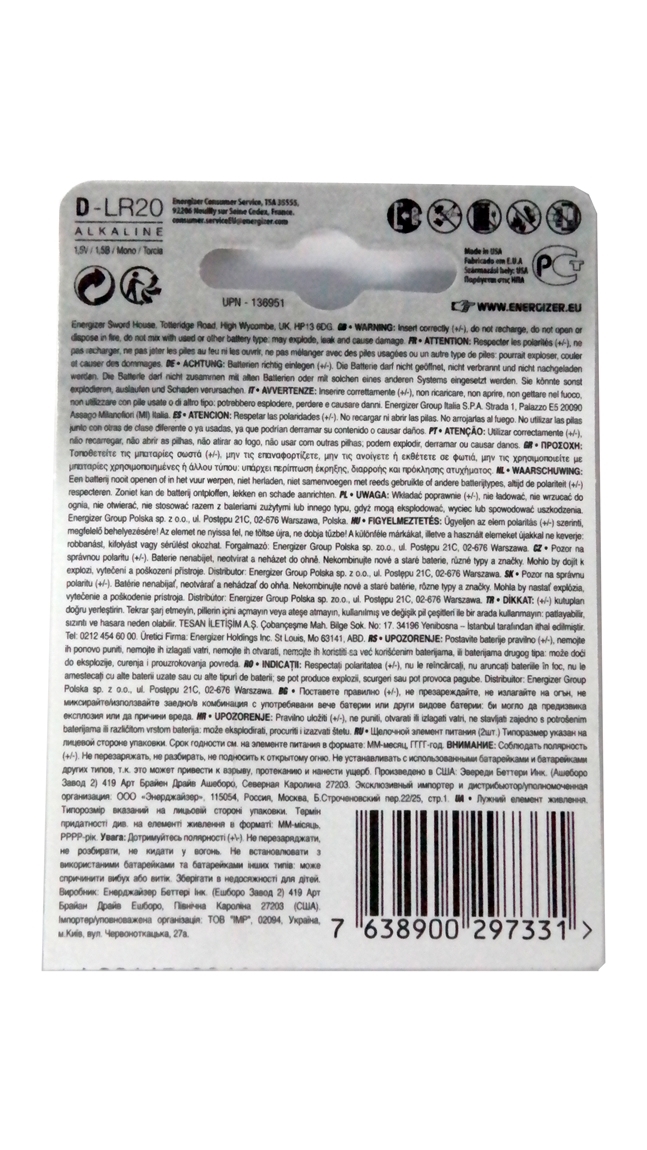 P-Energizer Alkaline Power D Boy 2 li Pil - LR20 7638900297331