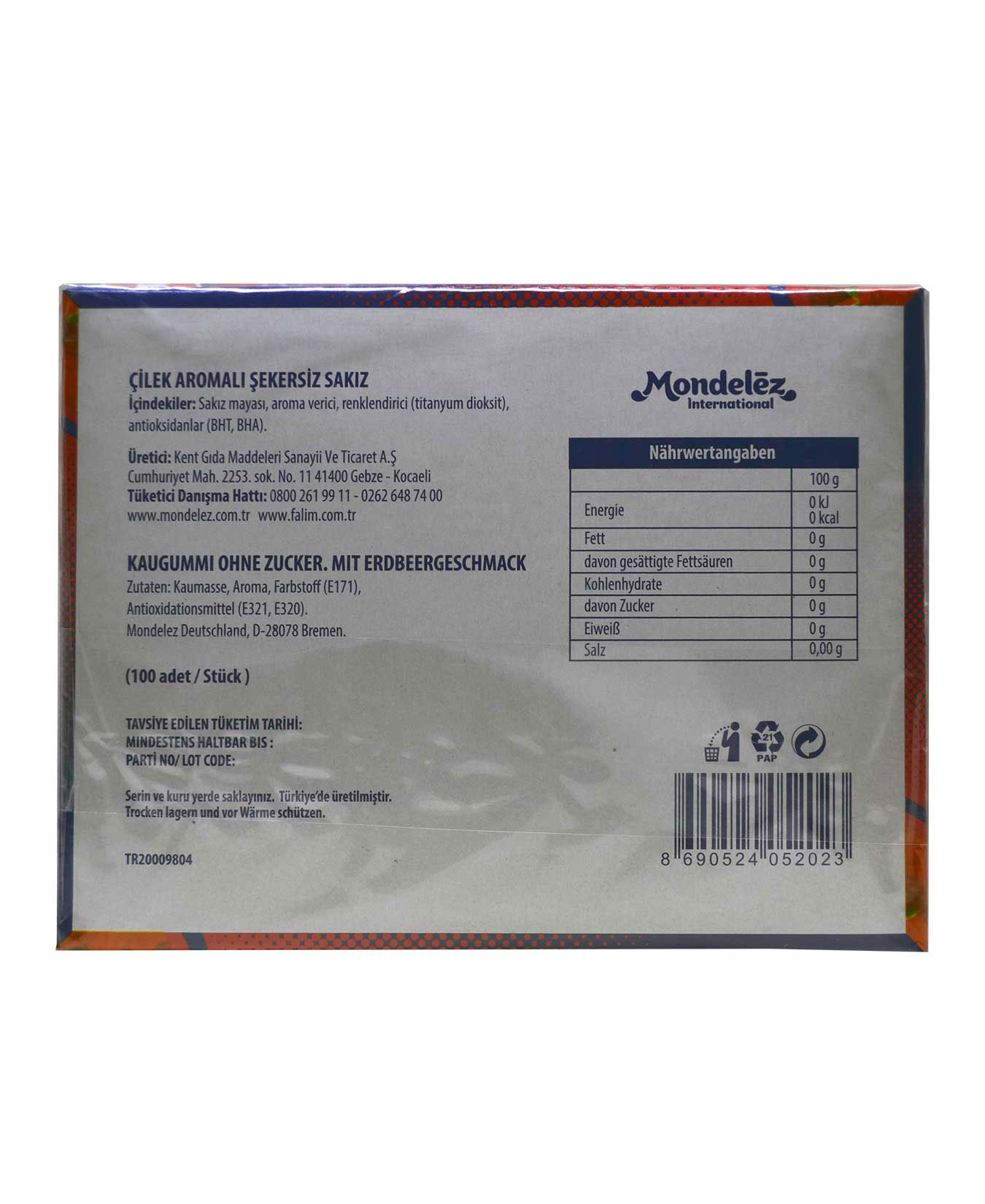 Falım Sakız 100'lü Paket Çilek Aromalı Şekersiz 8690524052023
