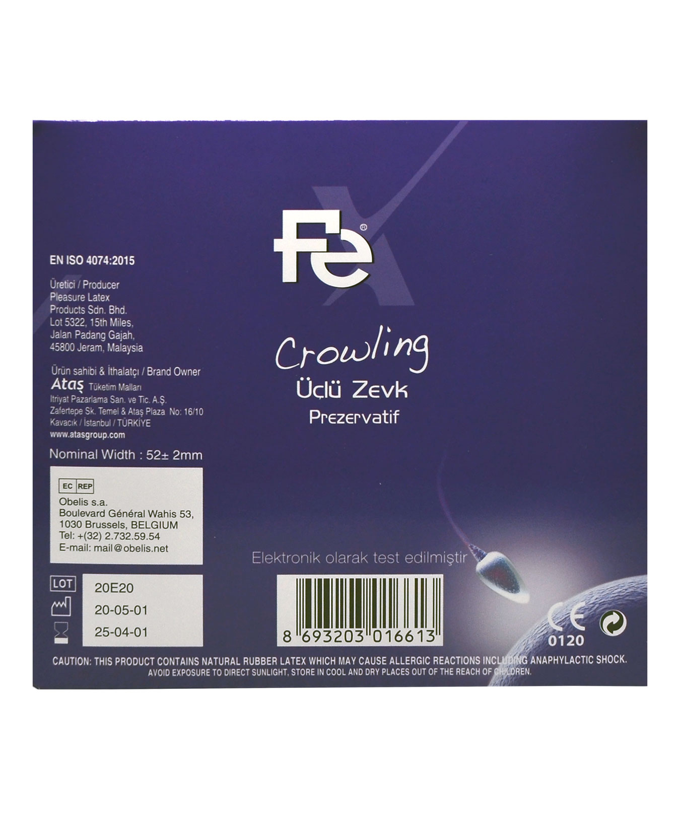 Fe Üçlü Zevk Prezervatif, iki taraf için de uyarıyı arttırmak için tasarlanmıştır. SKT 30.04.2025