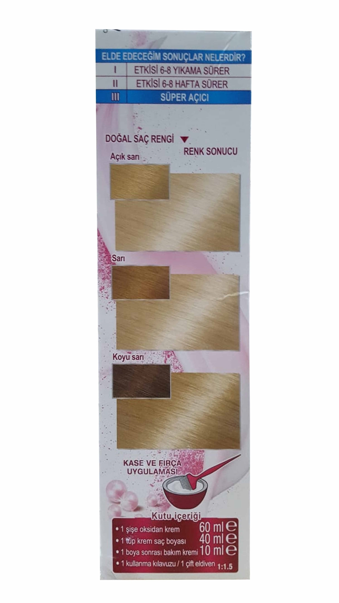 Krem saç boyasını ve oksidan kremi boya tasının içine dökünüz ve karıştırınız. Karışımın hepsini bir fırça yardımıyla saçınızın tamamına uygulayınız. Boyayı saçınızda kullanma talimatında belirtilen süre kadar bekletiniz ve iyice durulayınız. Uygulama sonrasında, 3 çeşit yağ içeren boya sonrası bakım kremini saçınızın tamamına uygulayınız. Bir süre bekletip durulayınız. Saçlarınız kolay taranır ve yumuşaklık kazanır.