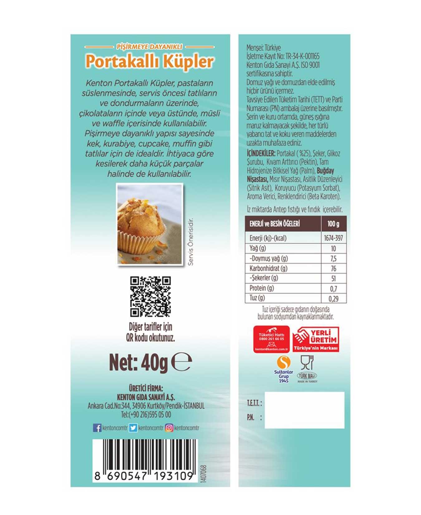 KENTON TATLI ŞEFİ MEYVELİ KÜPLER PORTAKALLI 40g YENİ 8690547193109
