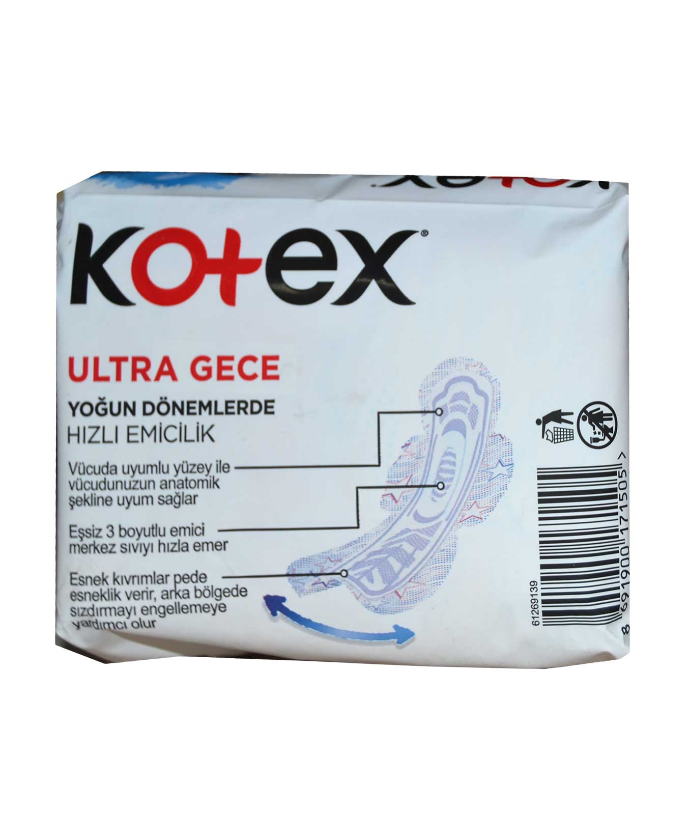 Kotex Ultra Gece Hijyenik Ped ekstra geniş ve uzun yapısıyla gece boyu kuru ve rahat kalmanızı sağlar.