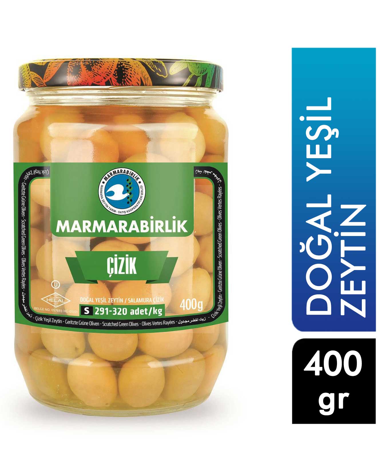 P-Marmara Birlik Çizik Cam Doğal Yeşil Zeytin 400 g (291-320) 8690103853041