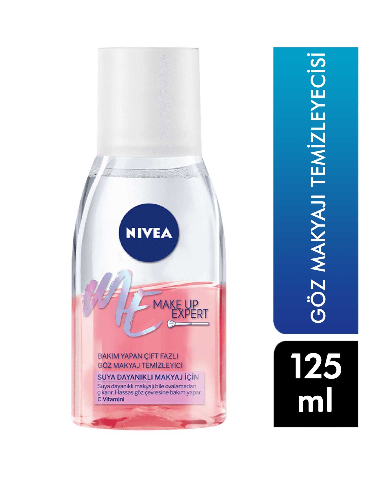 Nivea Make Up Expert Dual Phase Eye Make-up Remover, specially developed for the eyes and eye contours, provides deep and gentle cleansing without leaving an oily feeling and residue. It nourishes the eye area and eyelashes and cares for your skin.