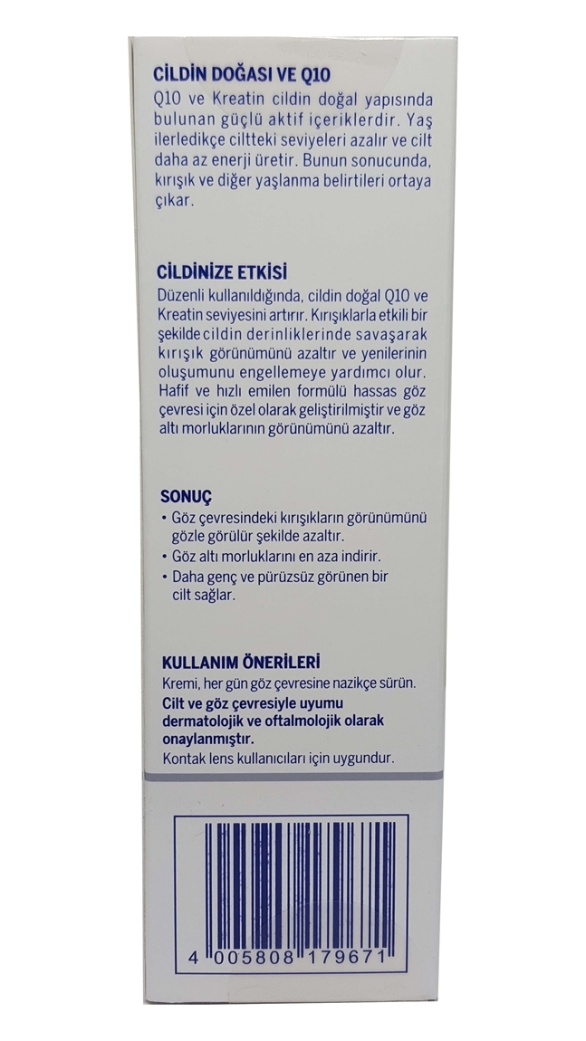 Nivea Q10 Plus C Anti-Wrinkle Eye Care Cream, which tightens the skin around the eyes, rejuvenates the skin and delays the effects of aging.