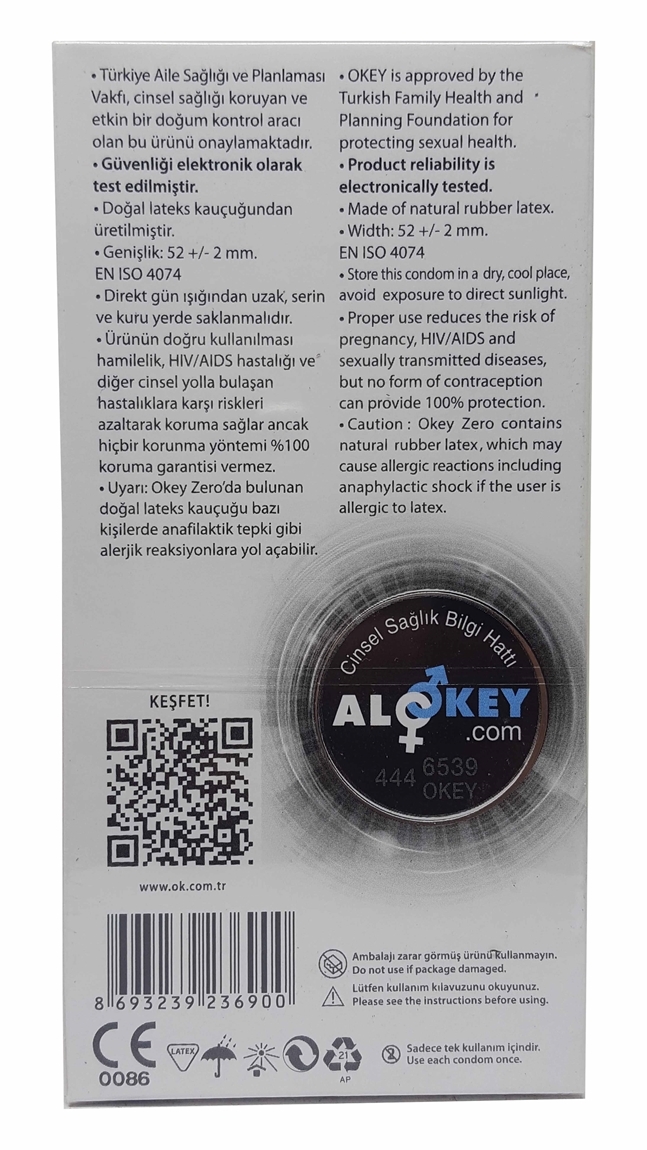 Cinsel yolla bulaşan hastalıklara ve istenmeyen gebeliklere karşı etkili koruma sunan Okey Zero Prezervatif, çok ince yapısıyla daha doğal bir his sunar.
