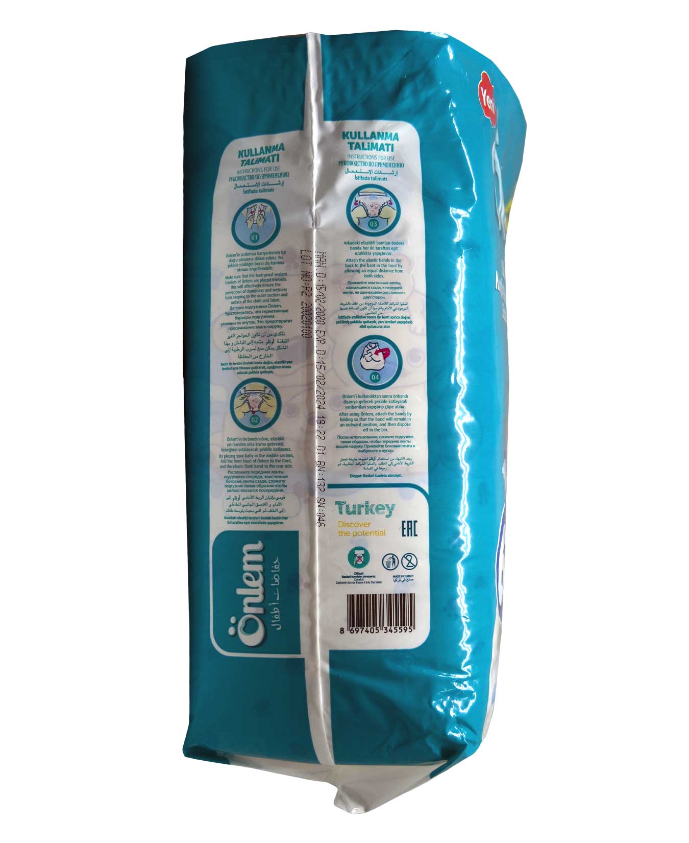 Esnek bantları ile rahatlık veren Önlem Bebek Bezi yüksek emici gücü sayesinde asla sızdırmaz ve uzun süre kuruluk sağlar.