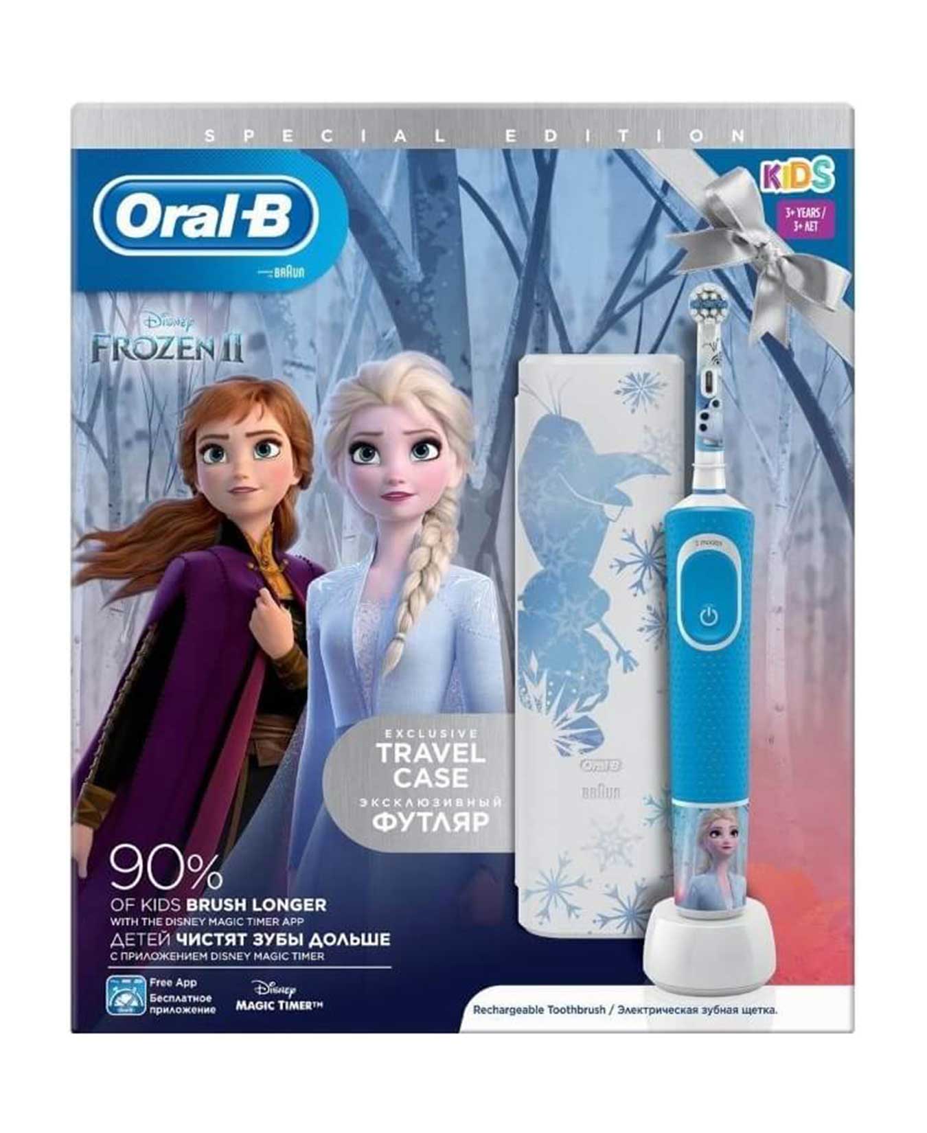 3 yaş üzeri icin olan Oral-B Kids elektrikli diş fırcası, çocuklara Disney Karlar Ülkesi 2 sayesinde eğlenceyi ve diş hekimlerinin tavsiyesi olan bir Oral-B diş fırcasının nazik, etkili temizliğini bir arada sunar. Bu fırça, çocuklara uygun eşsiz hassas modu sayesinde çocukların dişlerini nazikçe temizler. Sıradan manuel diş fırçasına göre daha fazla plak giderir. Gövdeyi kişiselleştirmek adına dört adet Karlar Ülkesi 2 temalı çıkartma icerir.