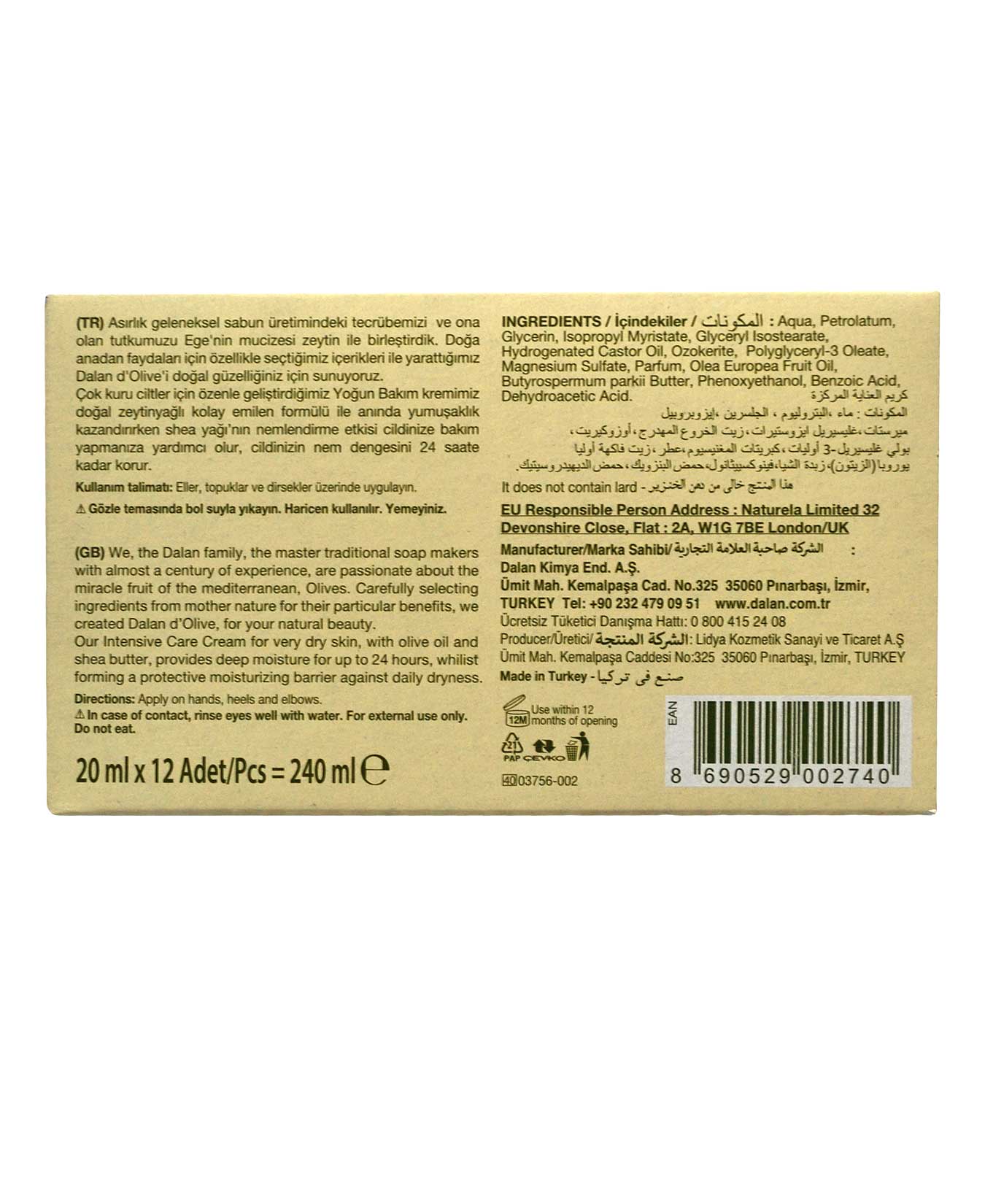Dalan D'olive Natural Hand and Body Cream 20 Ml x 12's Pack 8690529002740