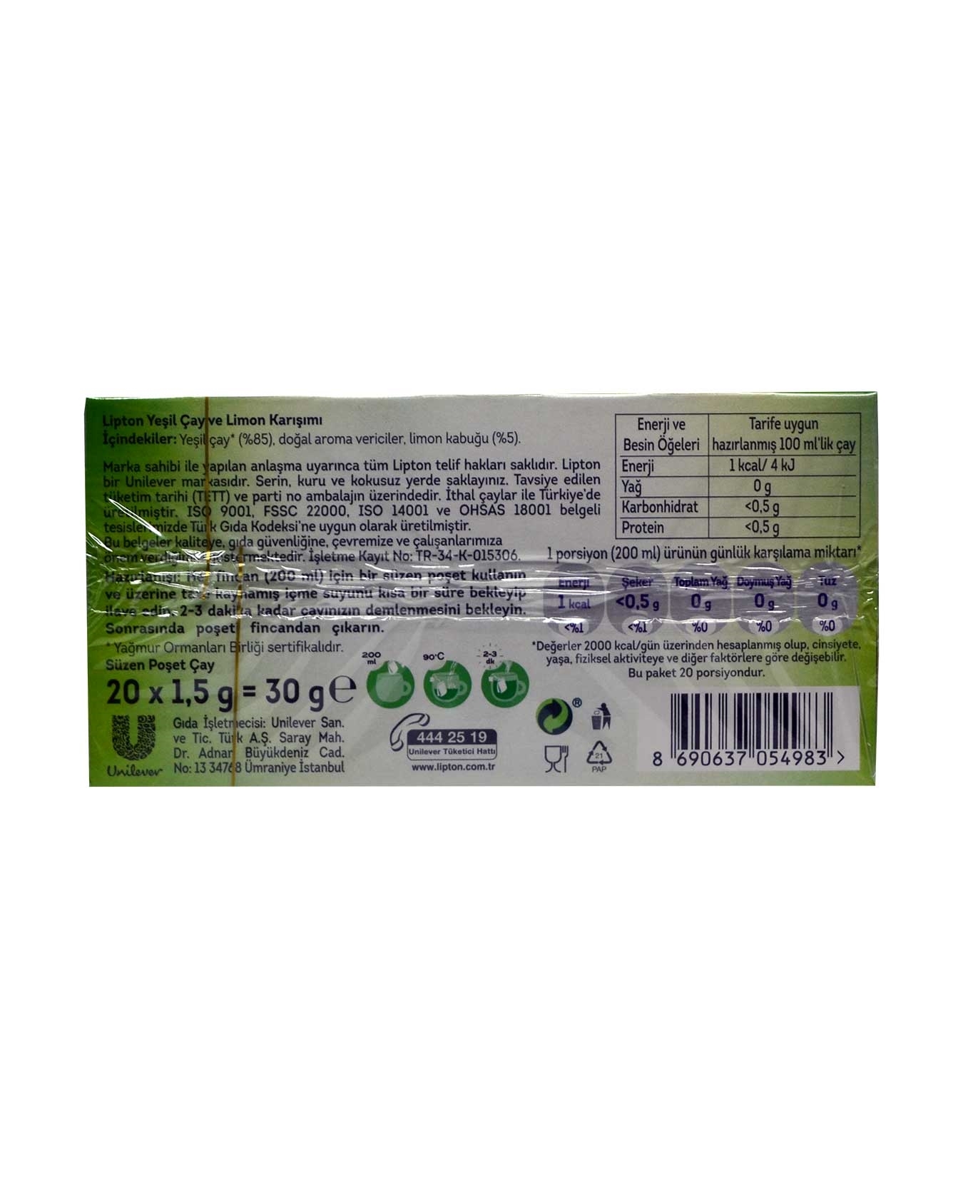 Lipton Limonlu Berrak Yeşil Çay 20'li 8690637054983