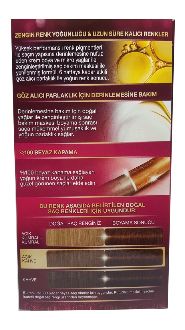 - Bu kutuda saçınızı boyamanız için gereken tüm malzemeler ve boyama sonrası saç bakım maskesi bulunuyor.