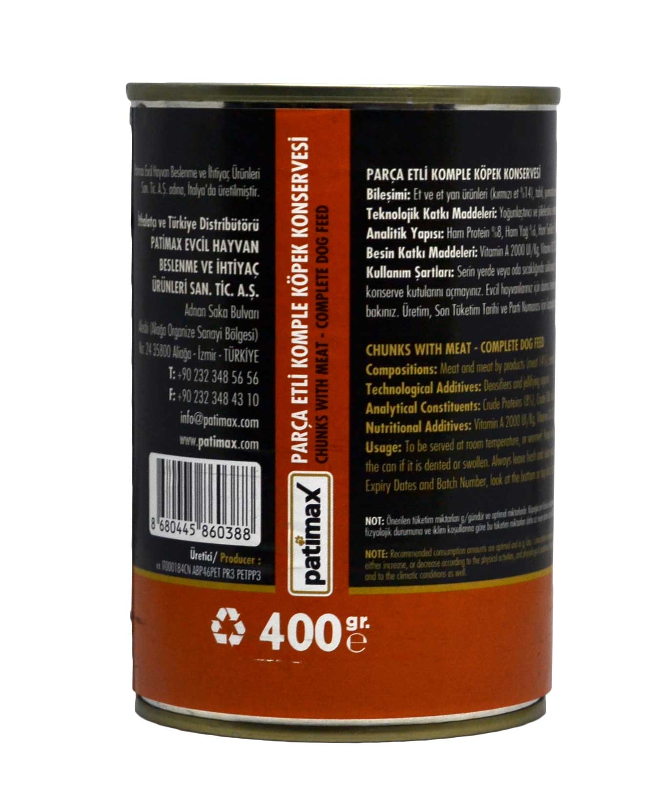 Patimax Köpek Maması Parça Etli Konserve 400 g 8680445860388