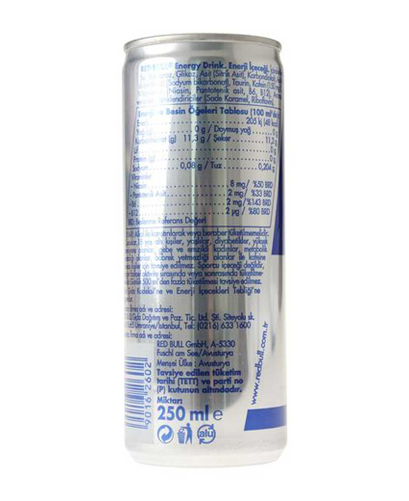 Caffeine, taurine, B group vitamins, sucrose, glucose and Alpine spring water Red Bull Energy Drink helps you recover the energy you lose after sports and intensive work.