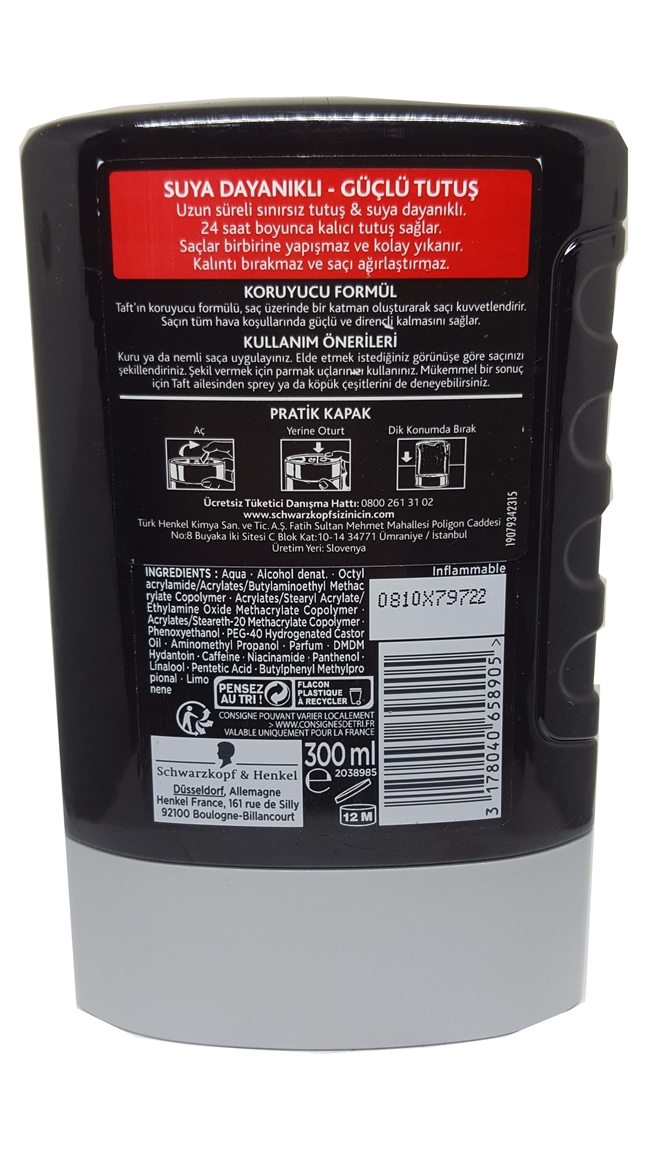 Taft Mega Absolutefix Black Hair Gel, which does not leave any residue and gives a bright appearance, allows you to maintain your style with its effect that lasts up to 48 hours. With its effective formula up to 48 hours, it protects the hair against wind and rain. Taft Mega Absolutefix Black Hair Gel, which prevents deterioration of your hair style, does not leave any marks or sticky feeling, although it is water resistant, it can be easily removed when washed. Thanks to its practical cover, it is easy to use, does not leak . Taft Mega Absolutefix Black Hair Gel 300 ml Do not Miss Wholesale and Retail Best Prices, Buy Now from Fmcgstore.