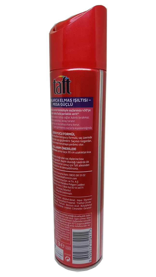 Taft Shine Hair Spray, which has a strong formula that protects your hairstyle all day long against wind, rain and harsh conditions, protects the hair against moisture loss and makes your hair look shiny, glowing and voluminous. Keep your style easily and for a long time with Taft Shine Hair Spray, which does not stick to hair and is easily cleaned without leaving marks. See Best Prices on Taft Shine Hair Spray 250 ml, Buy now from Fmcgstore at retail and wholesale prices