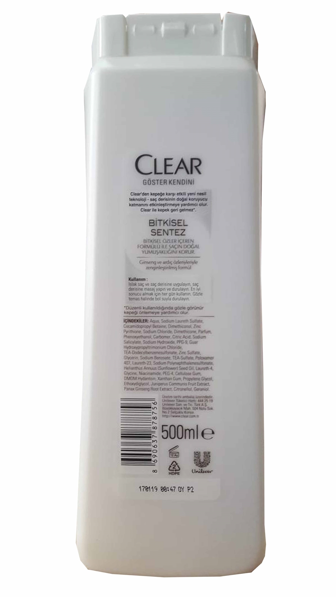 Clear Bitkisel Sentez Kepeğe Karşı Etkili Şampuan ginseng ve ardıç özlü formülüyle saç derisini onararak kepek oluşumunu önler.