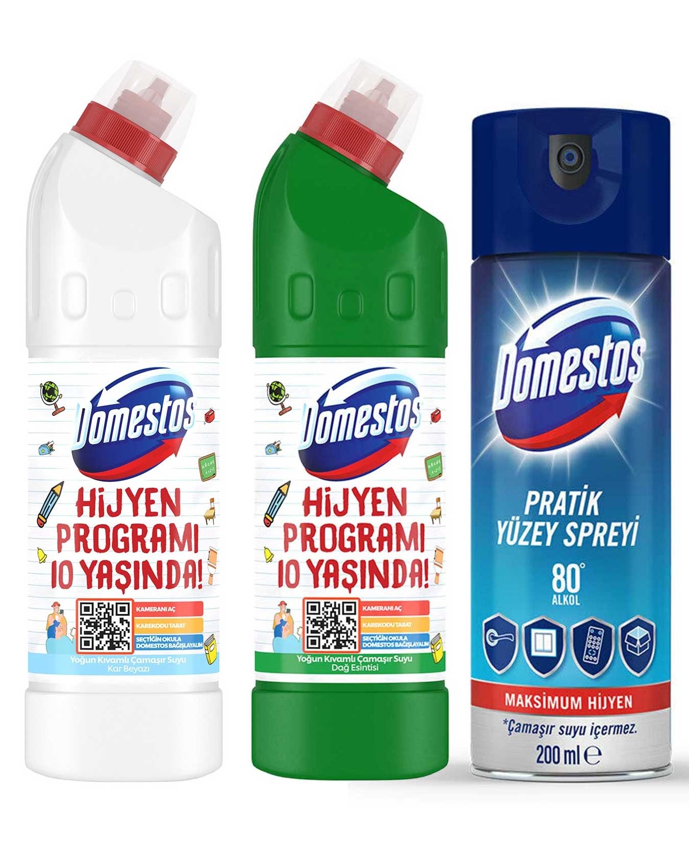 Domestos Çamaşır Suyu 2x750 ml + Pratik Yüzey Spreyi 200 ml Hediyeli Paket 8683130009161