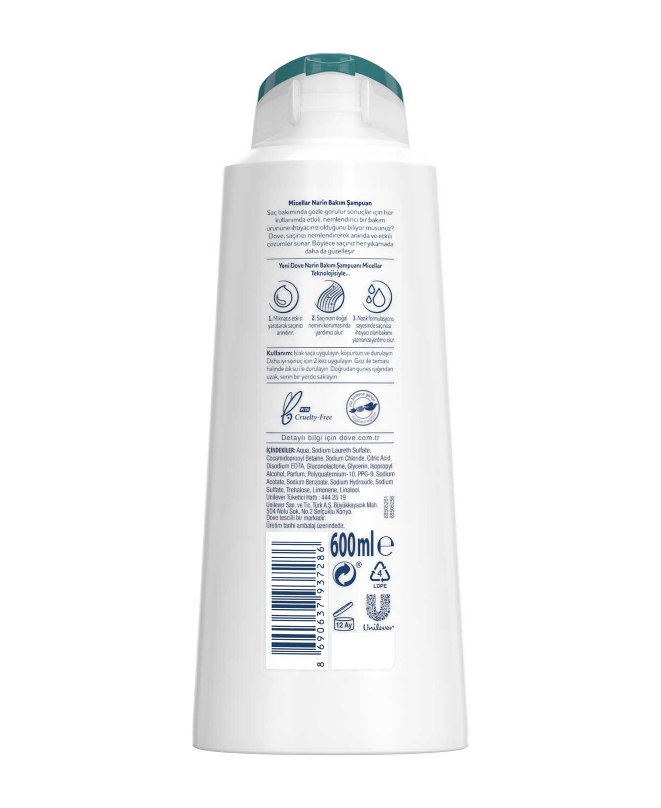 Dove Narin Bakım Şampuan ince telli ve hassas saçları yeniden sağlığına kavuşturur ve güçlendirir.
