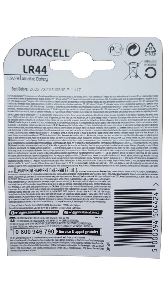 Duracell Special Alkalin Battery LR44 2's 5000394504424