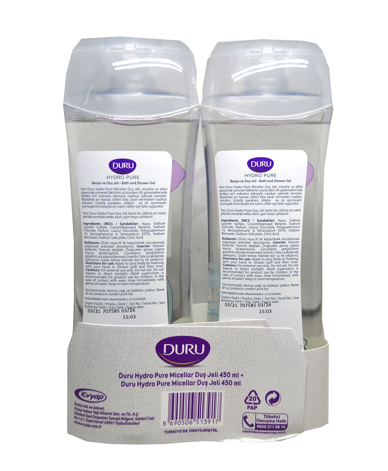 Duru Duş jeli 450 ml + 450 ml Hydro Pure Micellar 8690506513917