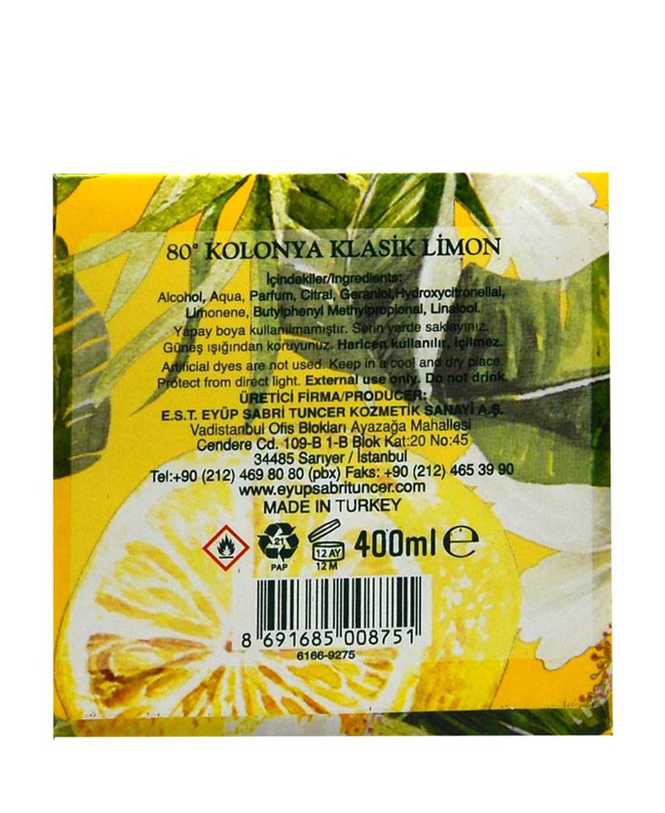 80 ° Alcoholic Eyüp Sabri Tuncer Cologne 400 ml Glass Lemon 8691685008751
