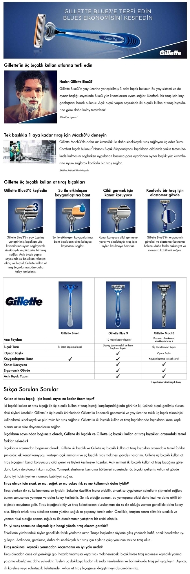Gillette Blue3 Disposable Razor 6's - Fenerbahçe