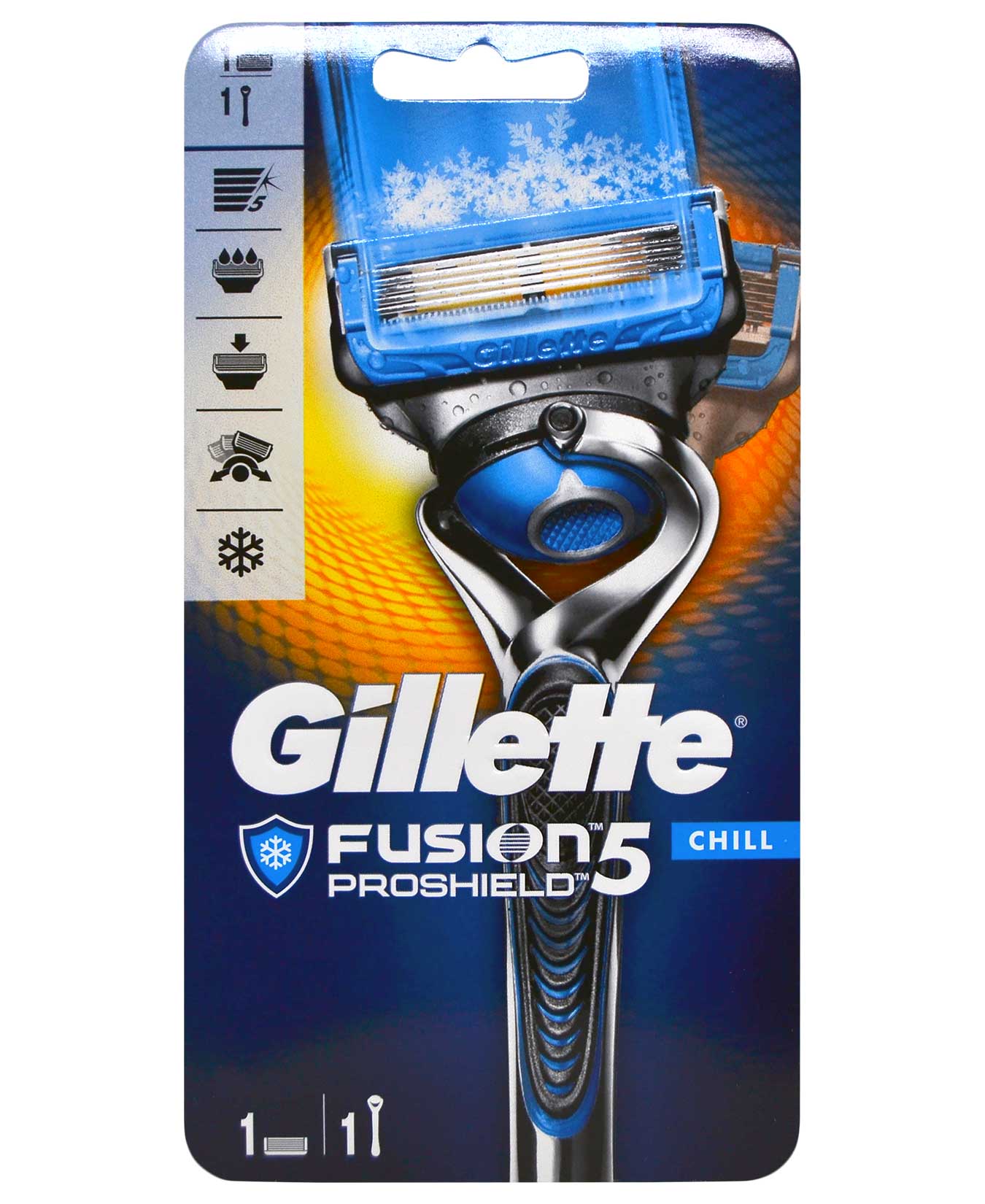 Gillette Fusion 5 Proshield Chill Razor provides a feeling of permanent refreshment throughout the day with its cooling lubricant bands.