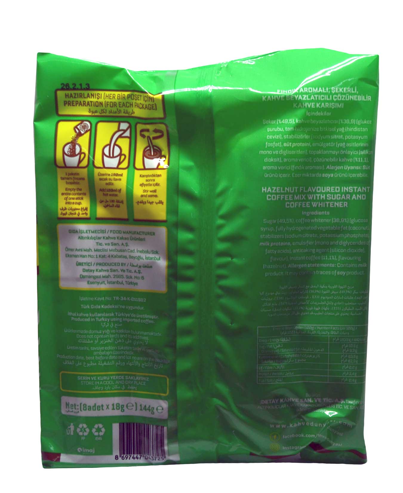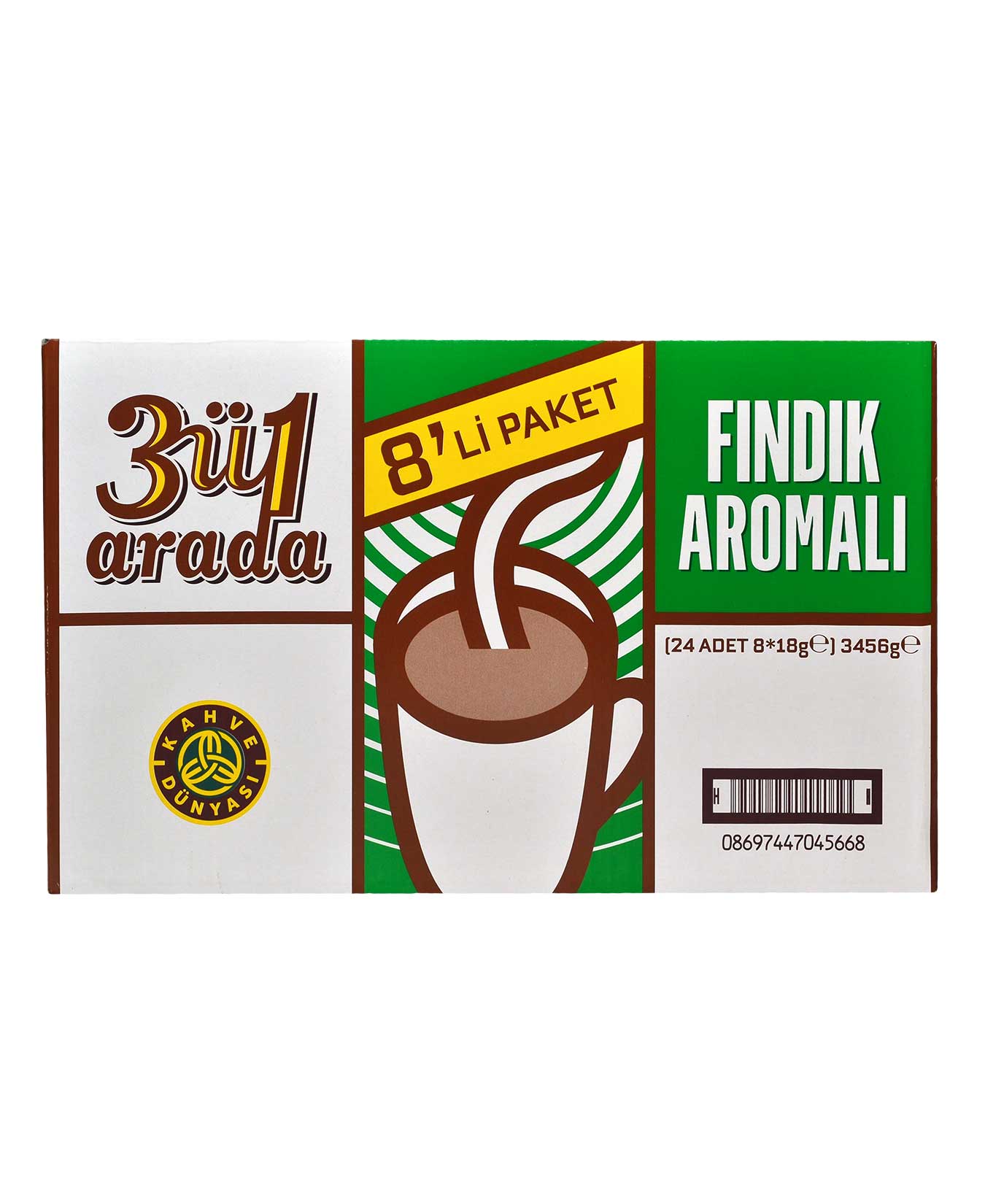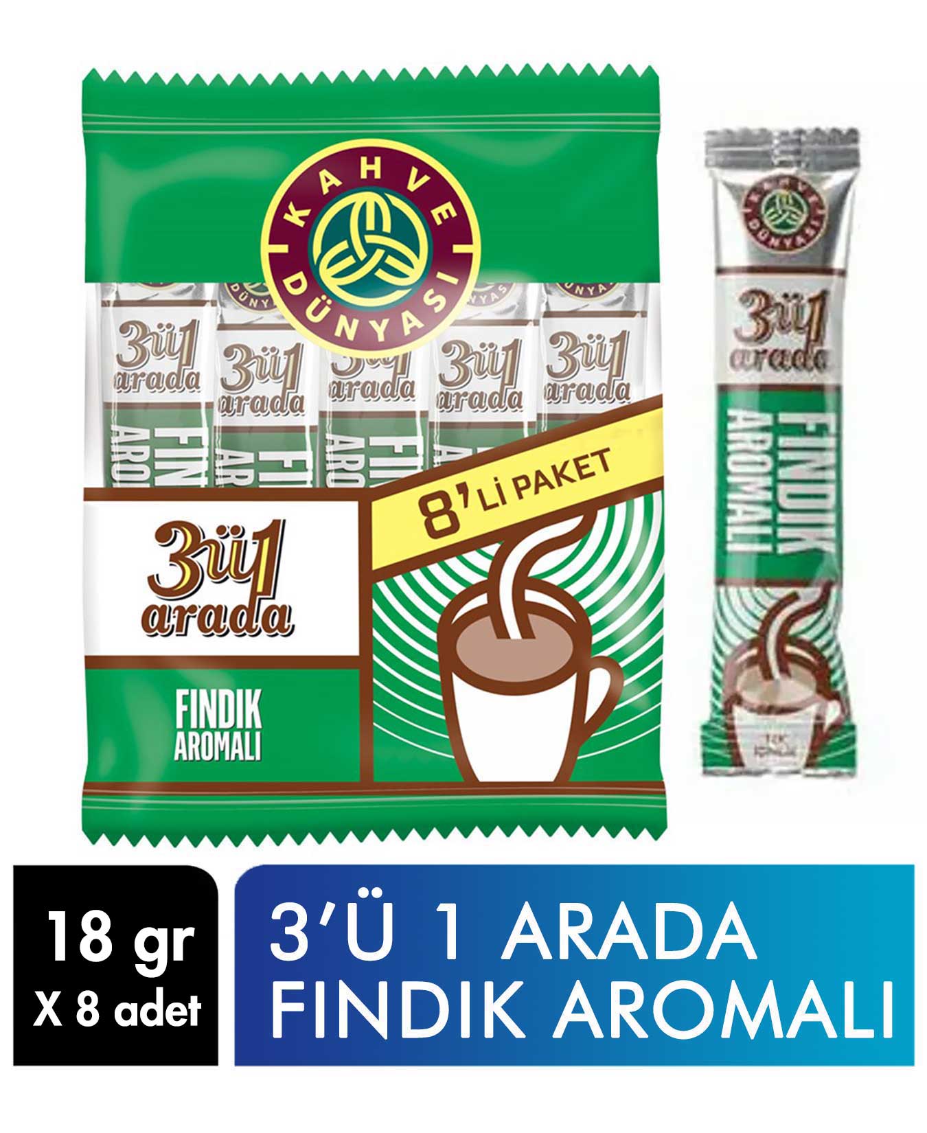 Kahve Dünyası Hazır Kahve 18 gr X 8'li Paket 3'ü 1 Arada Fındık Aromalı 8697447043725