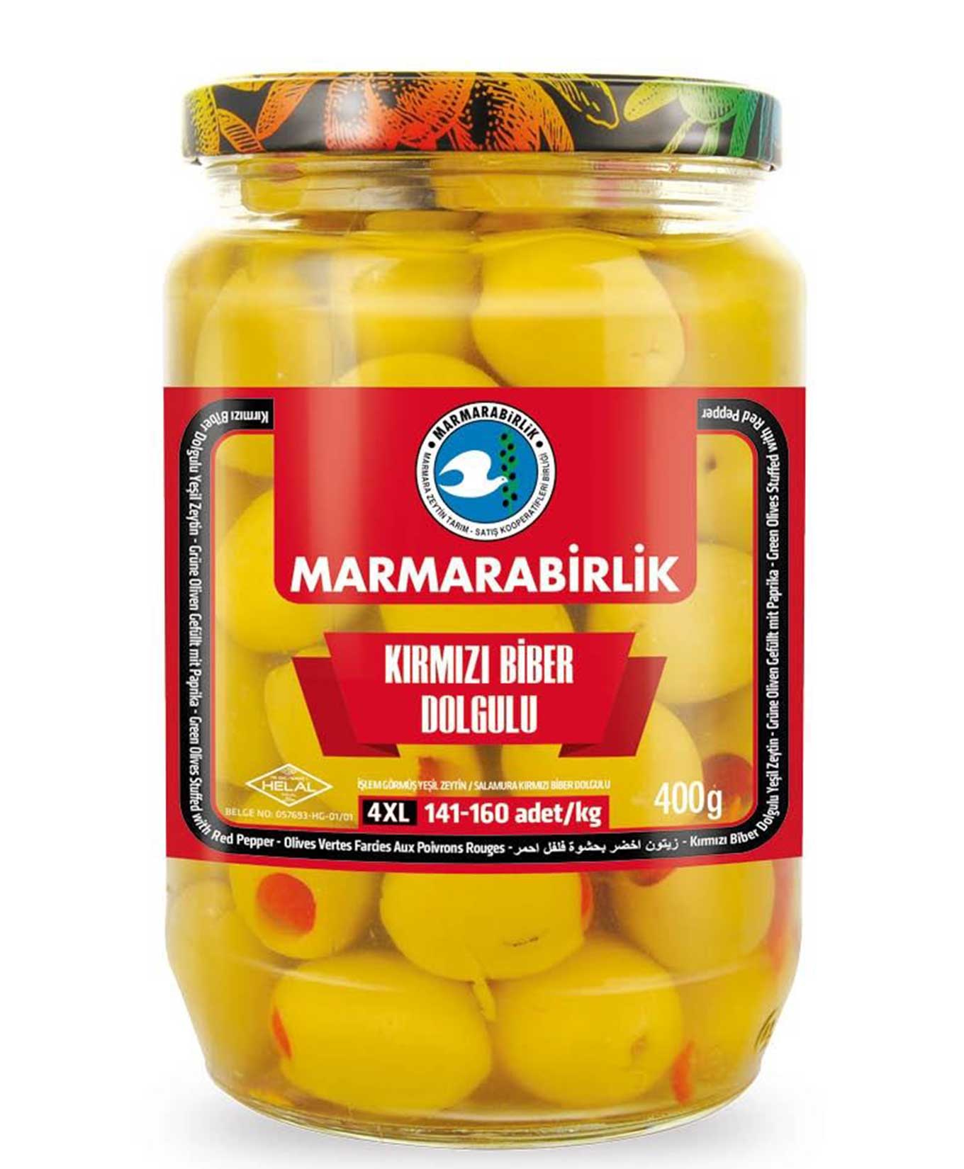 Marmara Birlik Kırmızı Biber Dolgulu Zeytin 400 gr (141-160) 8690103810013