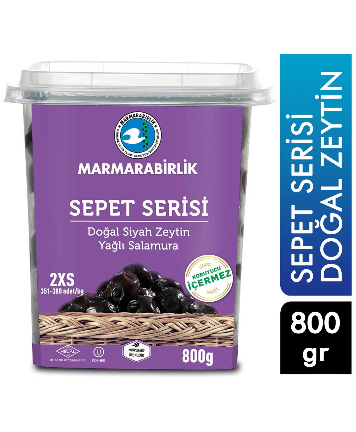 Marmara Birlik Sepet Serisi Hazır Kap Doğal Siyah Zeytin 800 gr (351-380) 8690103292536