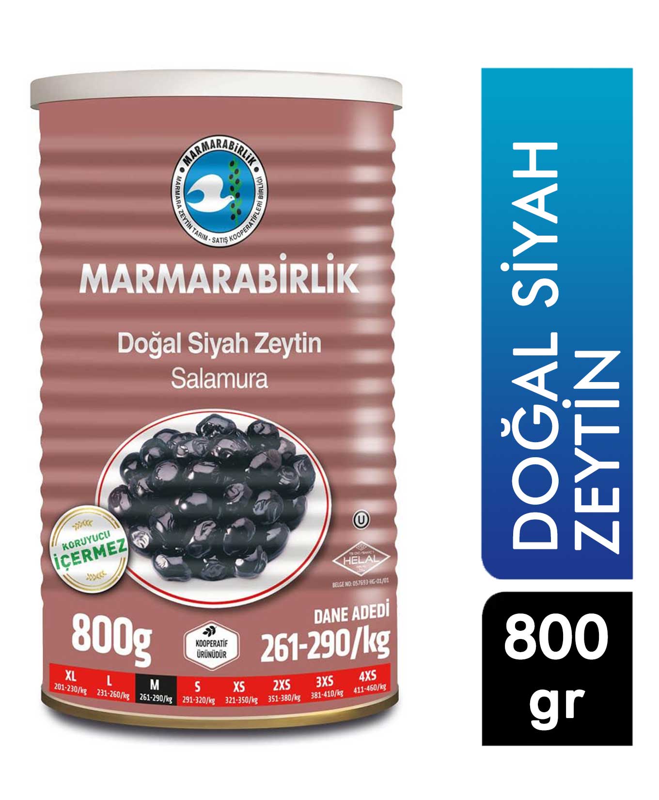 Marmara Birlik Süper Teneke Doğal Siyah Zeytin 800 gr ( 261-290 ) 8690103111813