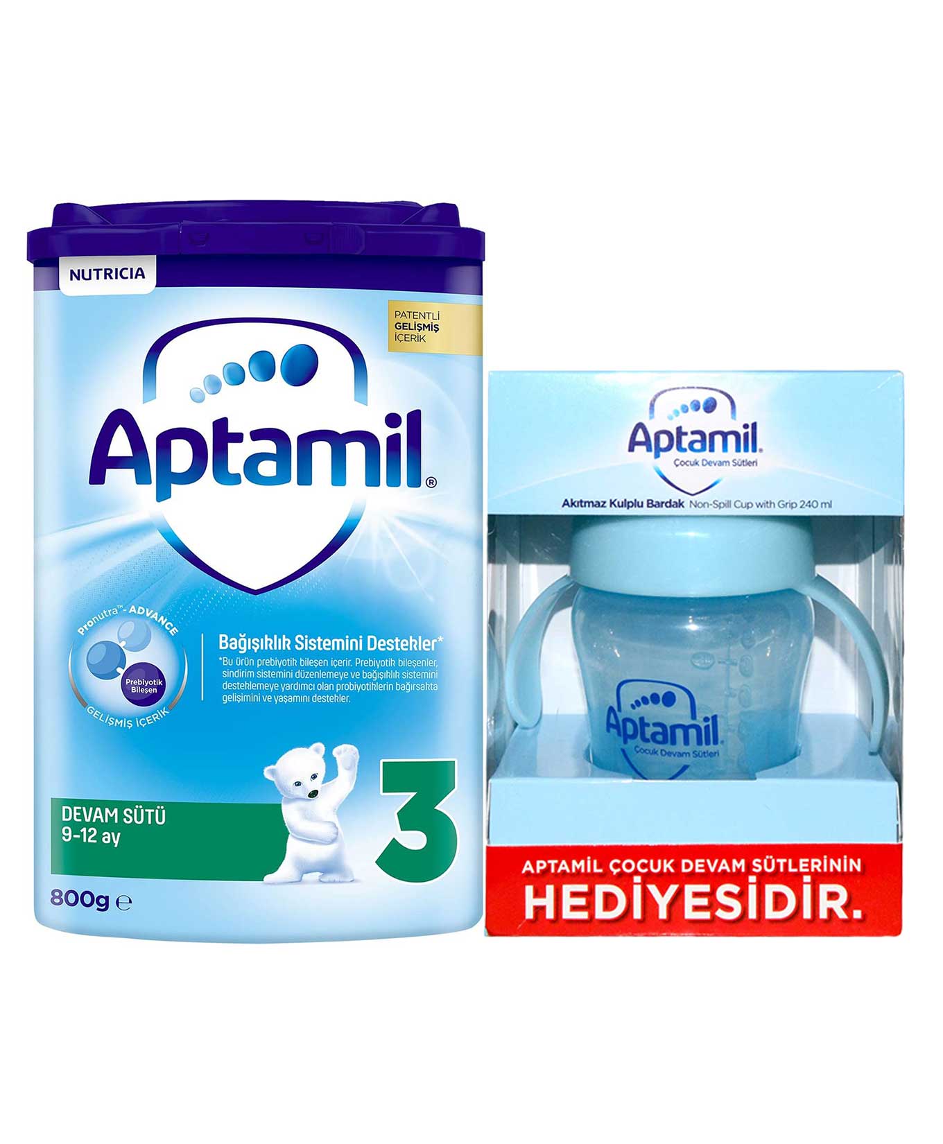 Milupa Aptamil 3 Devam Sütü 9-12 Ay 800 gr Biberon Hediyeli 8699745020569