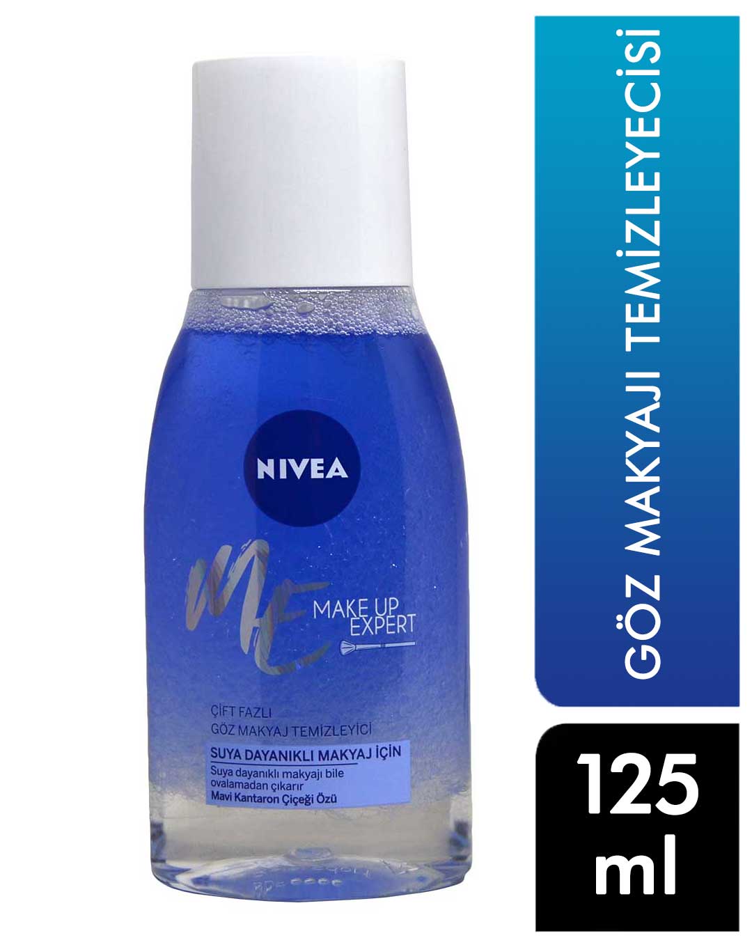 Nivea Make Up Expert Dual-Phase Eye Make-Up Remover with blue cornflower extract allows you to easily remove even waterproof eye makeup without rubbing.