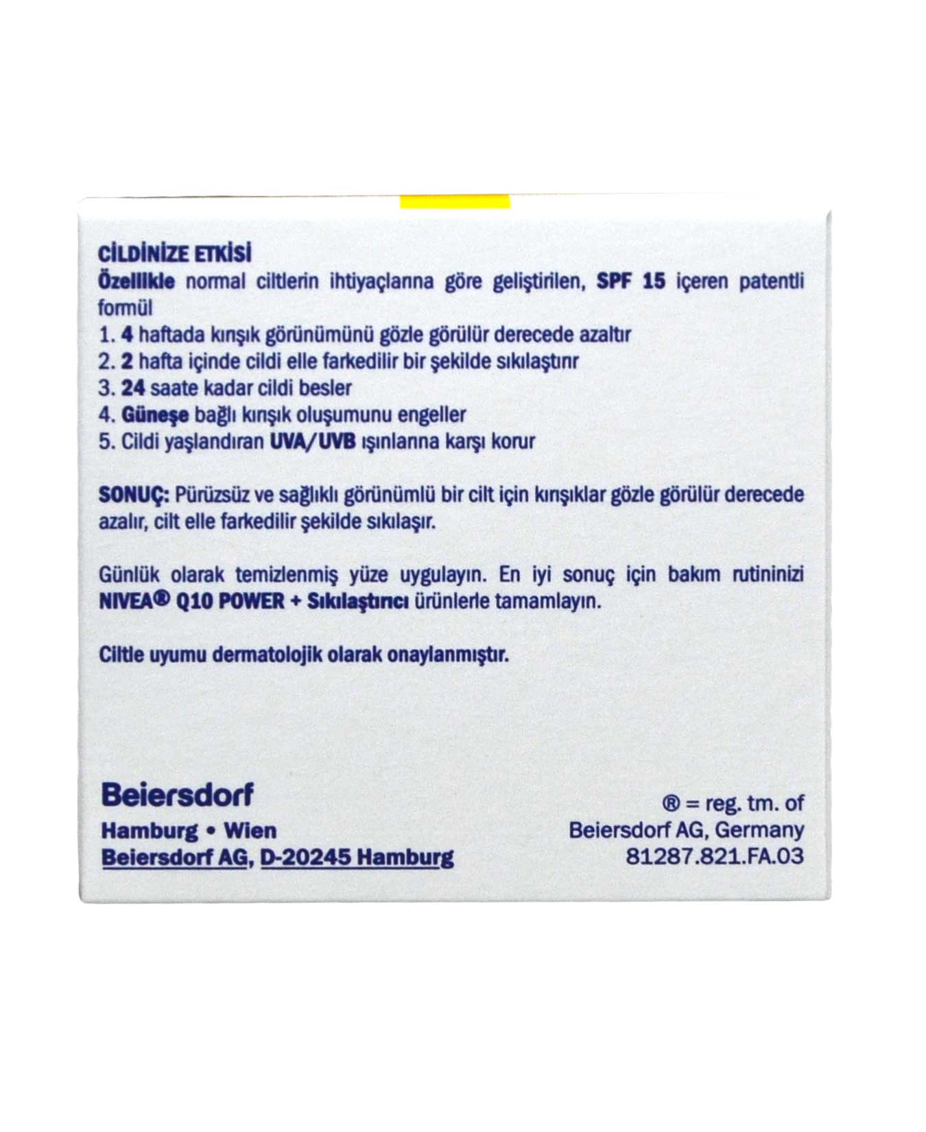 Take precautions against wrinkles with Nivea Q10 Anti-Wrinkle Day Care Cream that removes the effects of aging, lines and spots.