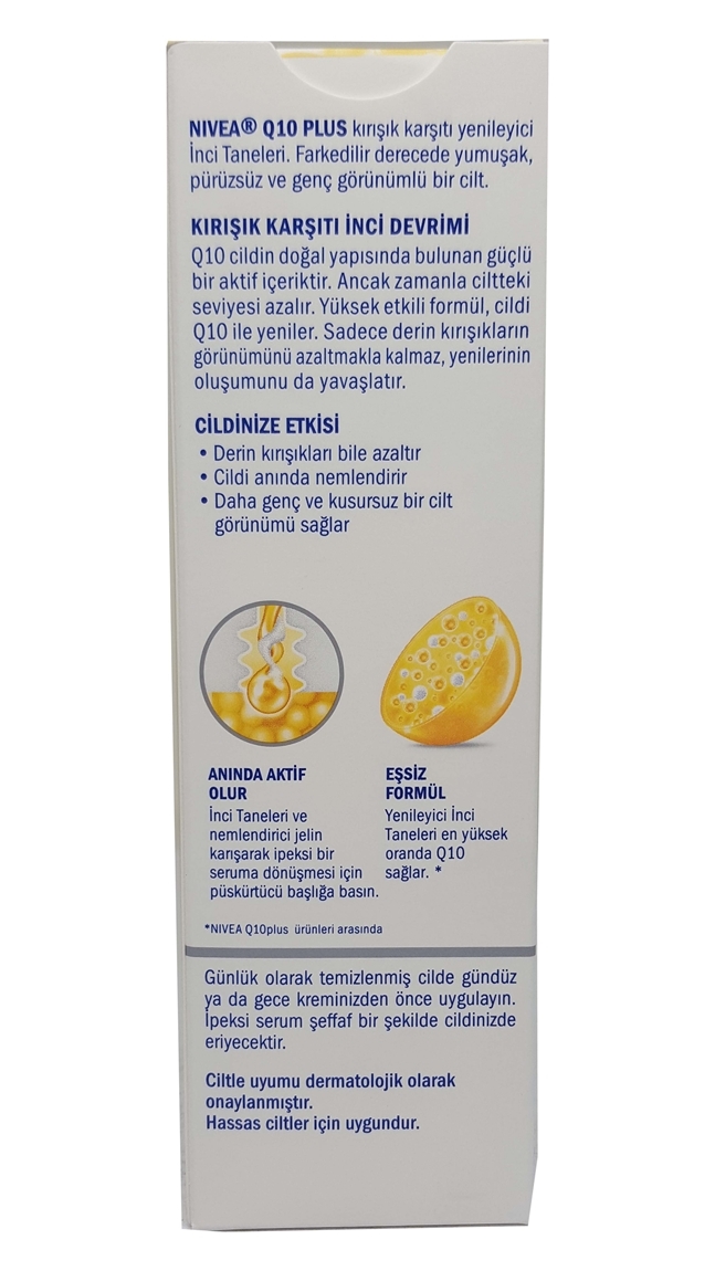 Nivea Q10 Plus Anti-Wrinkle Regenerating Pearl Grains Care Cream covers and removes even deep wrinkles with pearl beads activated in contact with the skin, and keeps your skin moist, soft and smooth throughout the day.
