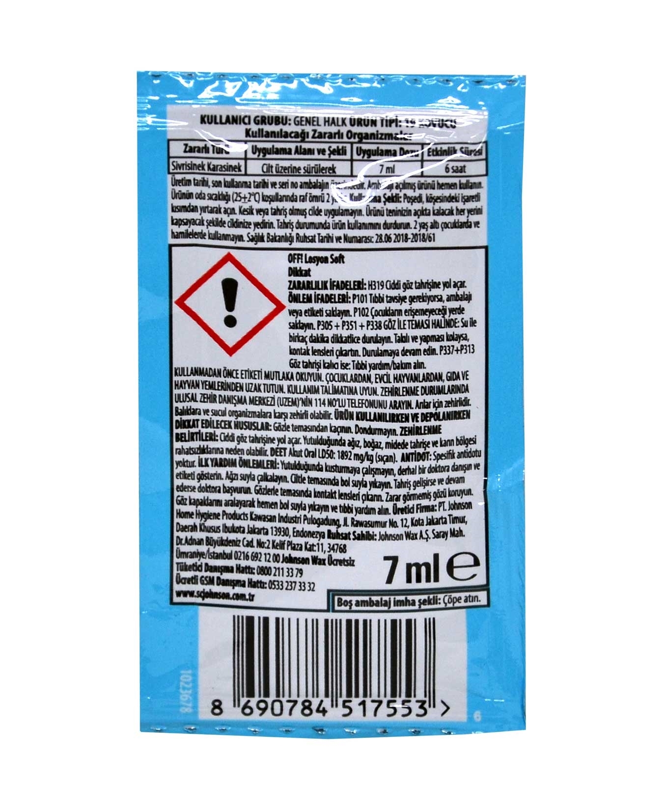 Tek kullanımlık, pratik paketlerde gelen Off Sinek Kovucu Losyon, 6 saat boyunca sivrisinekleri ve karasinekleri uzak tutar. Yumuşatıcı yapıdaki formülü sayesinde cildinizi kurutmaz, rahatsızlık vermez.