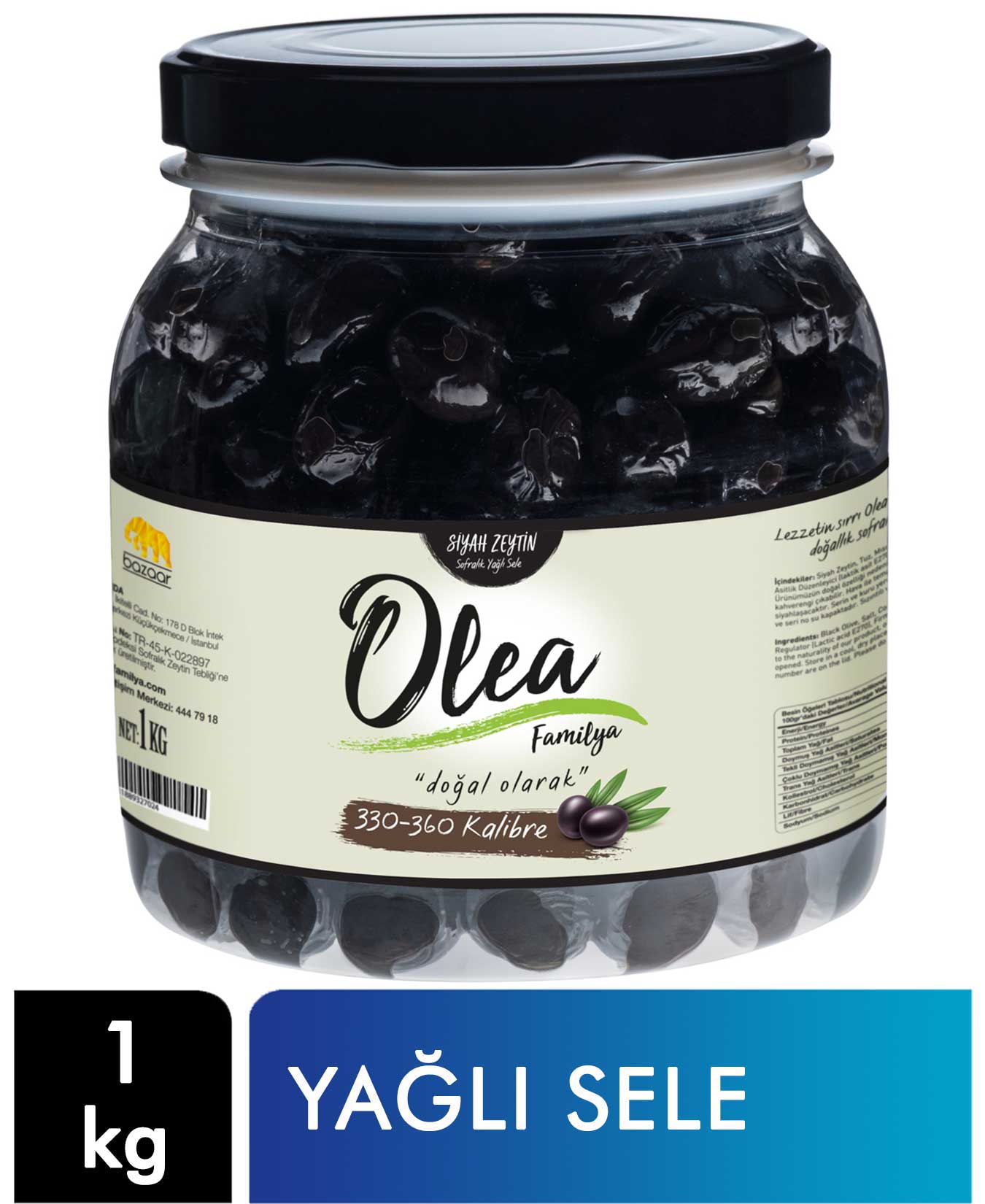 Olea Familya Siyah Zeytin Pet Kavanoz 1 kg X 6'lı Koli Yağlı Sele 330-360 Kalibre 8681889327086