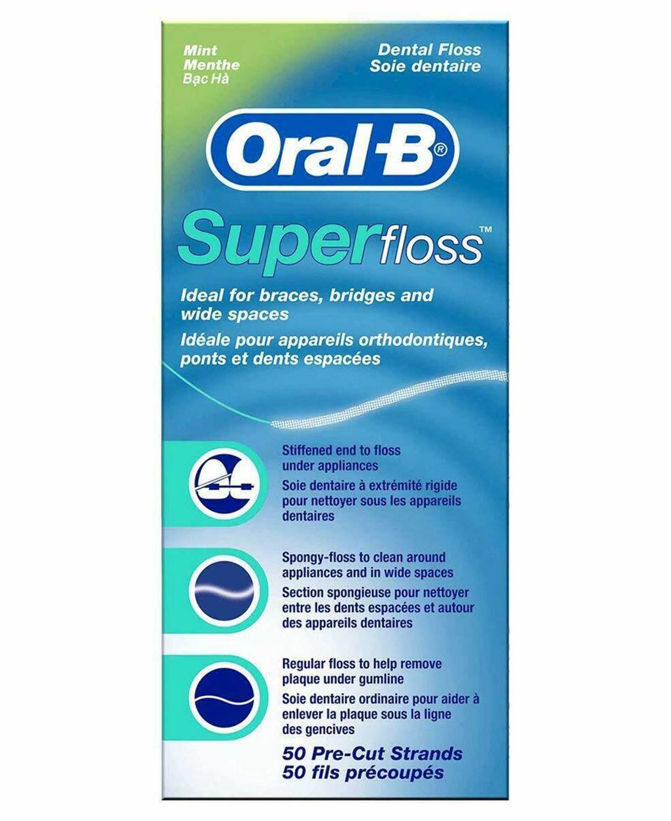 Oral-B Super Floss orthodontic dental floss provides solutions for cleaning braces, bridges and large spaces.