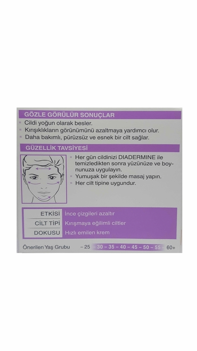 Cildi besleyen ve onaran Diadermine Essential Care Kırışıklık Karşıtı Krem kırışıkları azaltarak daha gergin ve sıkı, pürüzsüz bir tene kavuşmanıza yardımcı olur.