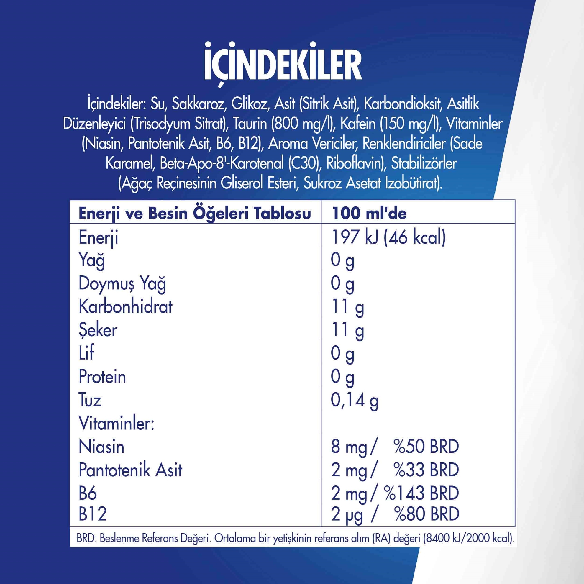 • Sugar amount of 1 can of Red Bull Energy Drink; It is close to the sugar content of the same amount of orange or apple juice - 11 g per 100 ml.