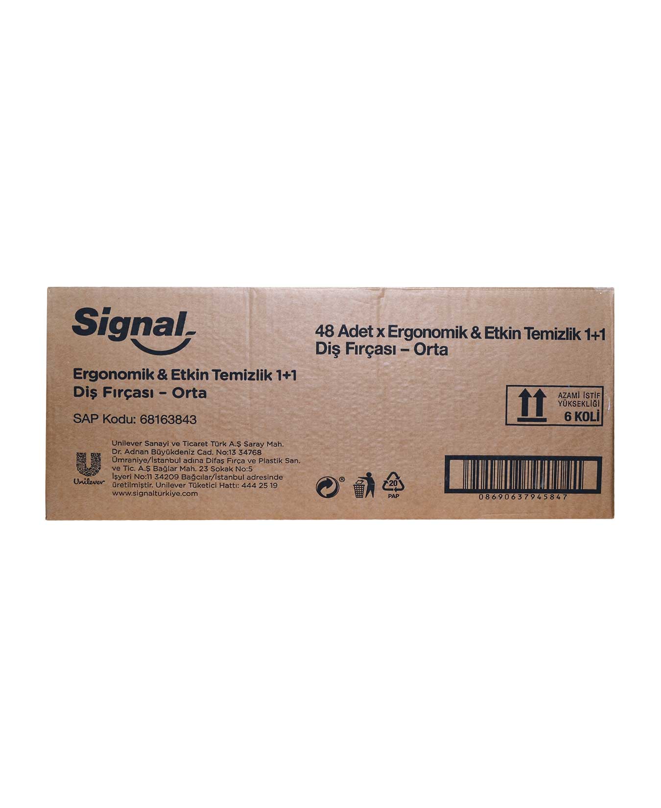 En gerideki dişlere kadar tüm ağız içine kolayca ulaşabilmesi için tasarlanan Signal Ergonomik Diş Fırçası özel uzun ve kıvrımlı boyun tasarımına sahiptir. Diş etlerini zedelemeden zorlu lekeleri ve yemek artıklarını temizleyen diş minesi üzerindeki lekeleri çıkaran Signal Ergonomik Diş Fırçası ile dişlerinizi kolayca temizler ve ağzınızda tam hijyen sağlarsınız. 2 diş fırçası içeren kazançlı Signal Diş Fırçası Ergonomik Orta 1+1 Paketini şimdi Fmcgstore'ye özel en ucuz toptan fiyatlarla satın alın.