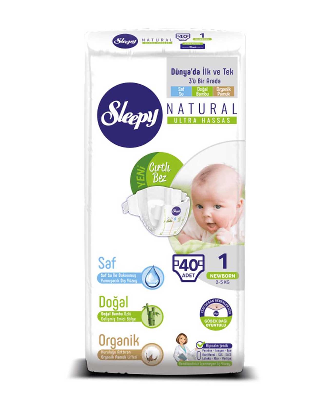 Sleepy Bebek Bezi 40'lı Natural Ultra Hassas 1 Yenidoğan 1-5 kg - Aktüel 8681212060376