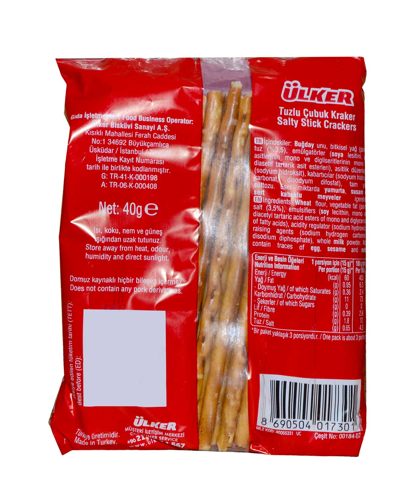ÜLKER ÇUBUK KRAKER SADE 40 GR 36 LI 68690504018478