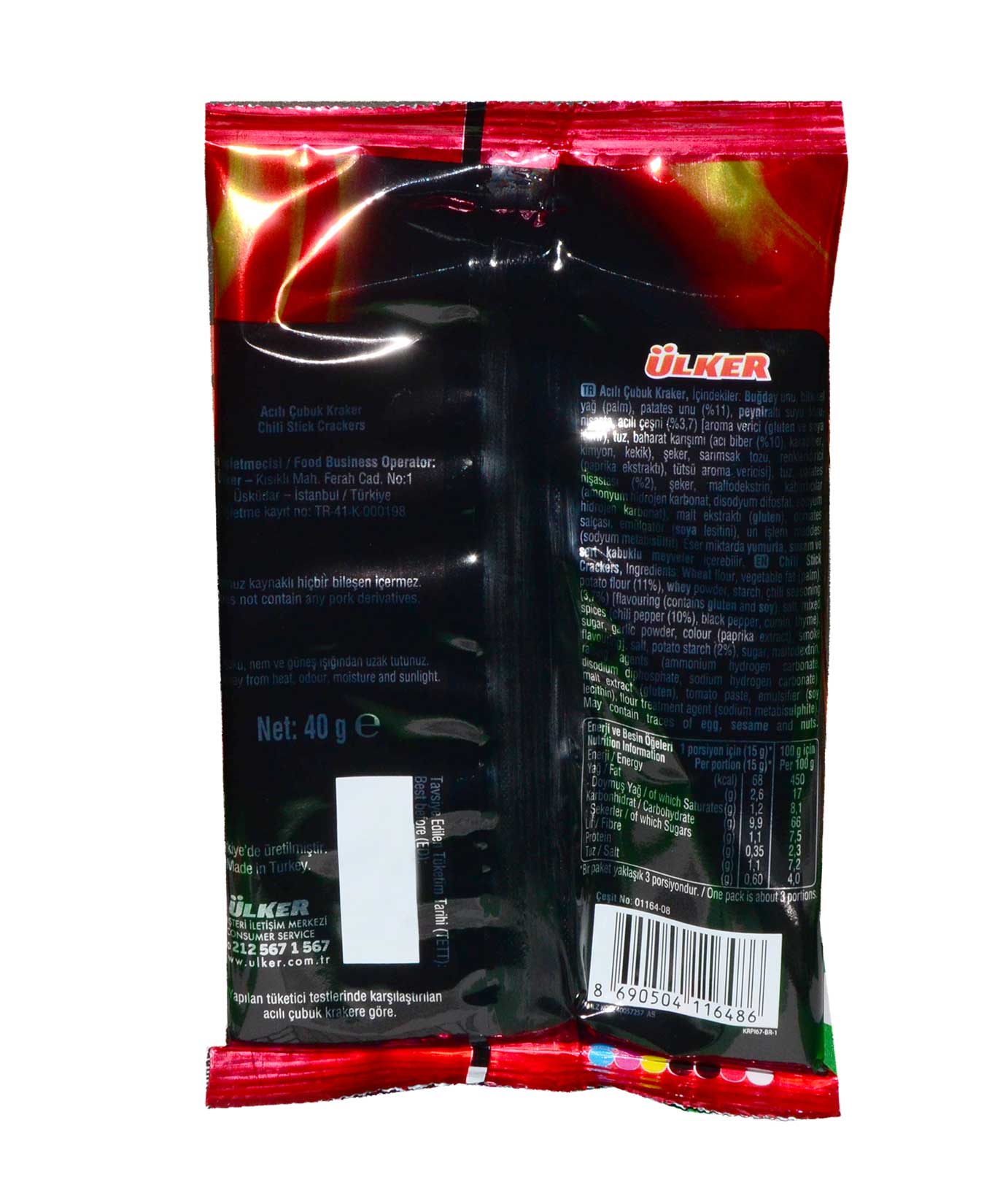 ÜLKER KRİSPİ ACILI ÇUBUK KRAKER 40 GR 15 Lİ 68690504116488